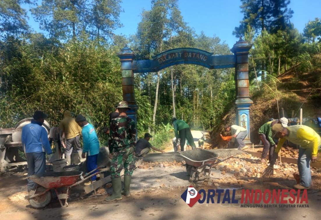 PONOROGO – Para warga Desa Selur, Kecamatan Ngrayun, Kabupaten Ponorogo yang dibantu anggota TNI gotong royong membangun akses jalan yang menghubungkan wilayah Ponorogo menuju ke Kabupaten Trenggalek.