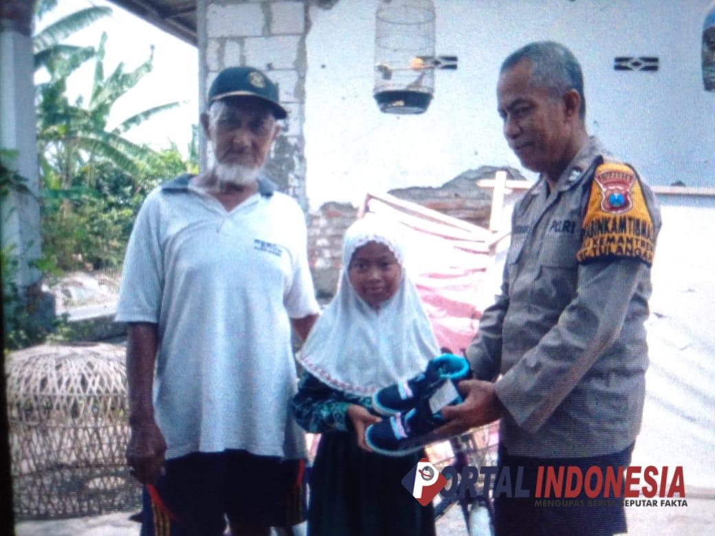 SIDOARJO — Mengetahui terdapat anak yatim piatu yang sekolah kelas 4 di SDN 2 Desa Kemantren, Tulangan, mengundang kepedulian Bhabinkamtibmas setempat dengan menghadiahi sepatu baru.