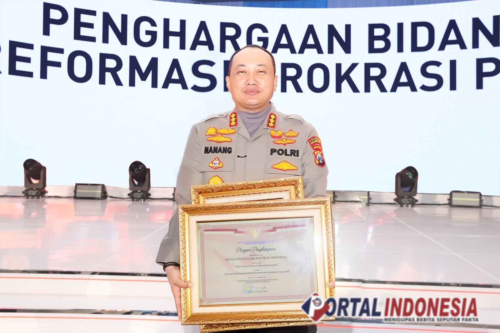 Kapolresta Malang Kota Kombes. Nanang Haryono saat menerima penghargaan dari Kapolri dan KemenPANRB.