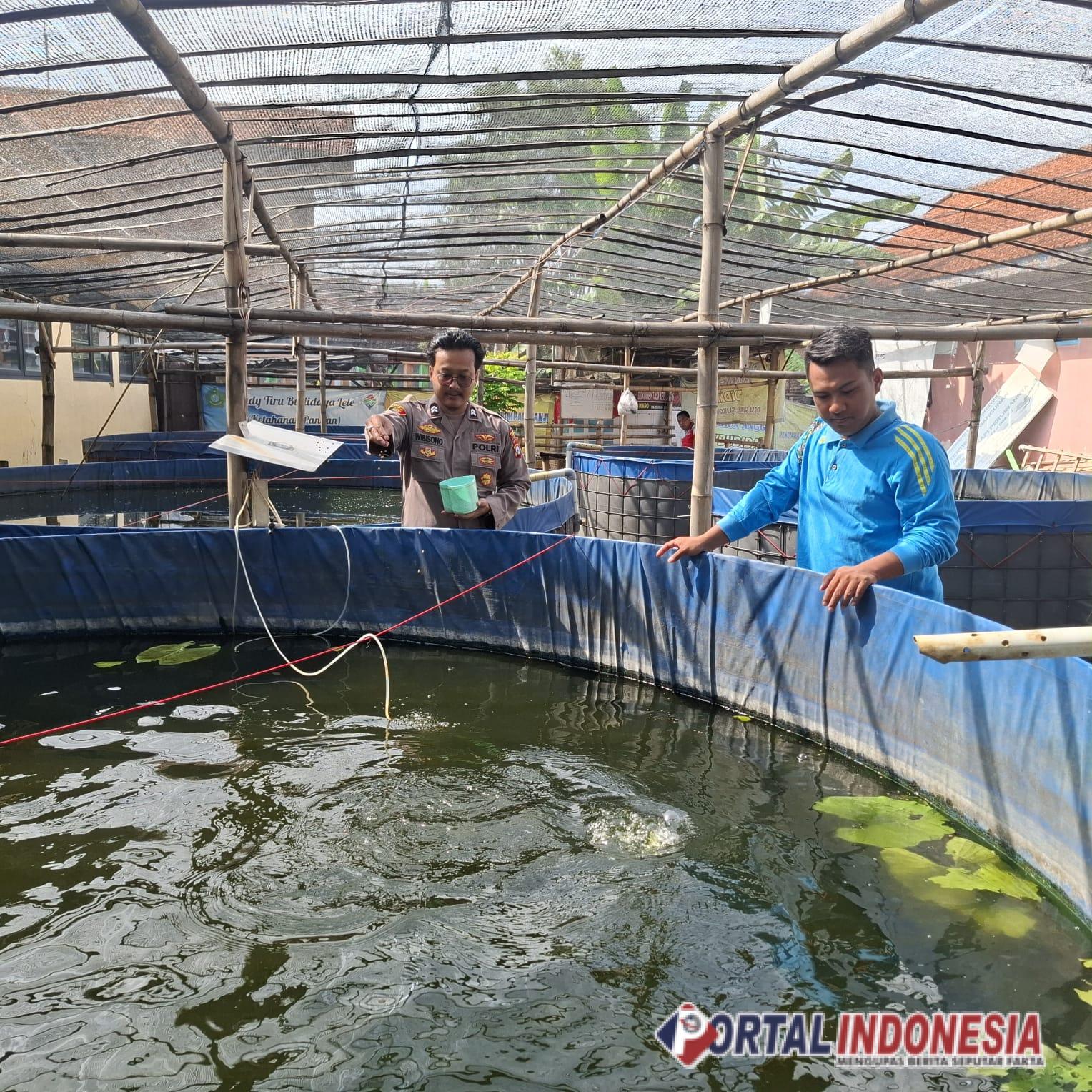 SIDOARJO – Mendukung program Asta Cita Presiden Prabowo Subianto di sektor ketahanan pangan nasional, Bhabinkamtibmas Desa Suruh, Polsek Sukodono, Briptu Wibisono bersama perangkat desa melakukan pengecekan perkembangan budidaya ikan lele di kolam bioflok milik BUMDes Suruh, Kecamatan Sukodono, Kabupaten Sidoarjo, Sabtu (17/5/2025).