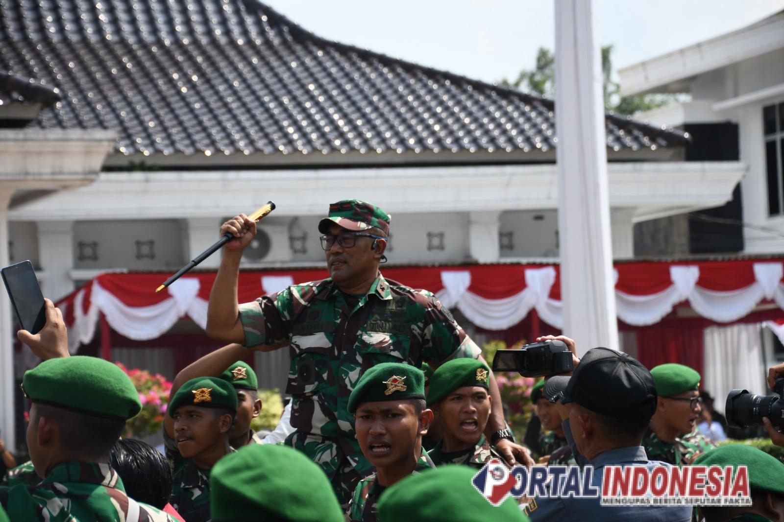 MURATARA — Danrem 044/Gapo Brigjen TNI Adri Koesdyanto menyambut prajurit Batalyon Infanteri Teritorial Pembangunan 846/Ksatria Silampari, bertempat di lapangan kantor Bupati Kab. Muratara Jl. Lintas Sumatera Kec. Rupit, Selasa (1/7/2025).