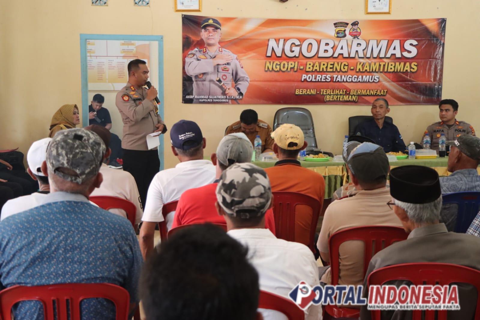 Berlokasi di Balai Pekon Sawang Balak, Kapolres bersama jajaran membagikan bantuan sosial dan bendera Merah Putih kepada empat perwakilan pekon. Dalam sambutannya, ia menegaskan bahwa Ngobarmas bukan sekadar ngopi, tetapi menjadi sarana mendengar aspirasi, mempererat silaturahmi, dan menanamkan pesan kamtibmas, terutama di wilayah terluar Kabupaten Tanggamus.