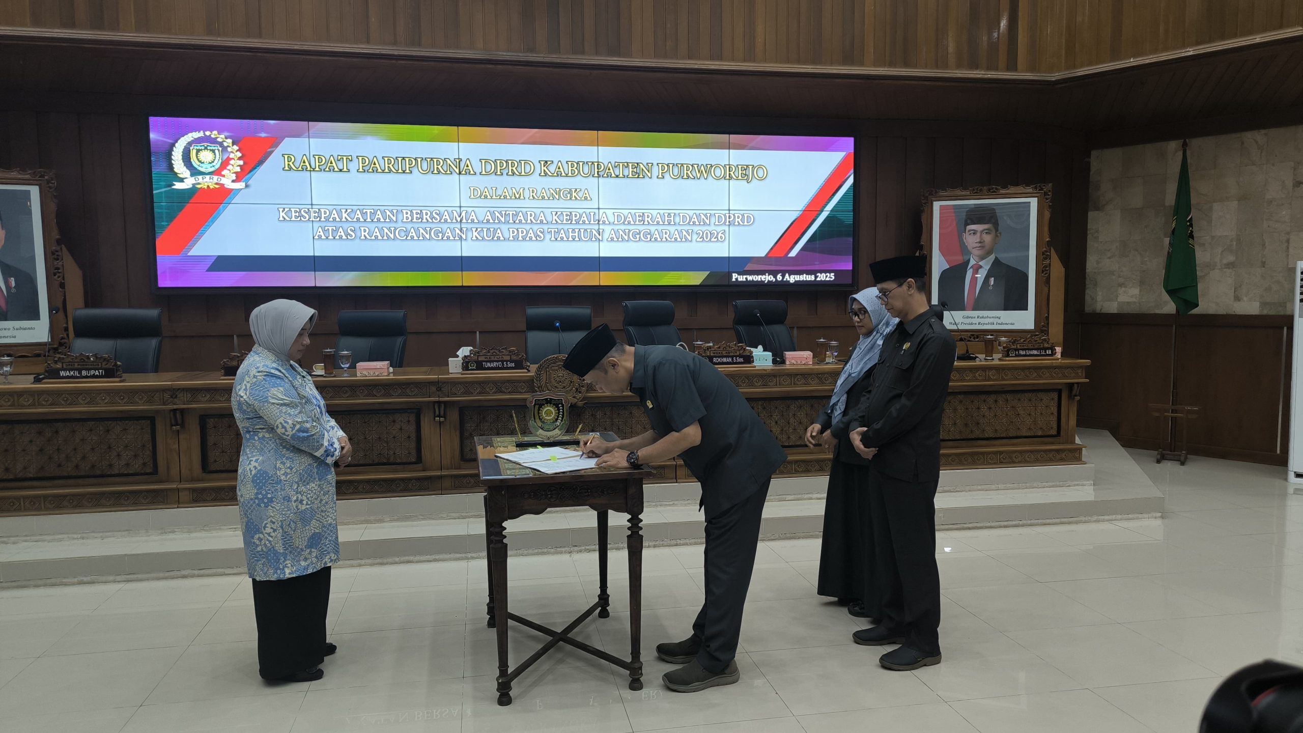 PURWOREJO – Hasil pembahasan Rancangan Kebijakan Umum Anggaran (KUA) dan Prioritas Plafon Anggaran Sementara (PPAS) Tahun Anggaran (TA) 2026 disepakati dalam Rapat Paripurna di Gedung DPRD Kabupaten Purworejo, Rabu (6/8) malam.
