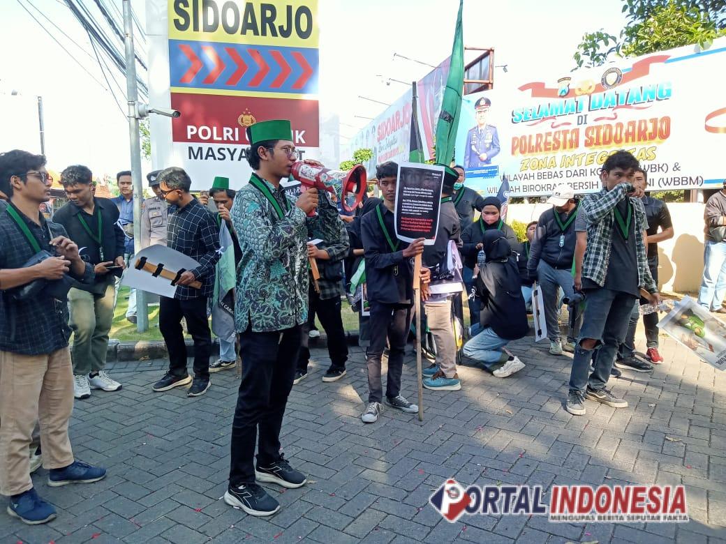 SIDOARJO – Himpunan Mahasiswa Islam (HMI) Cabang Sidoarjo menggelar aksi damai di halaman Mapolresta Sidoarjo pada Selasa (2/9/2025).