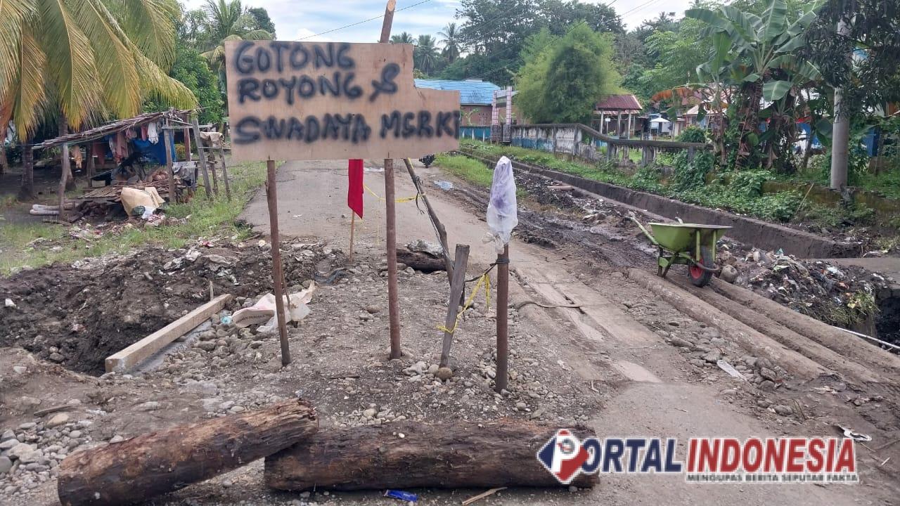 Aksi gotong royong ini dilakukan pada Senin (2/6/2025), ditandai dengan pemasangan papan bertuliskan “Gotong Royong dan Swadaya Masyarakat” di tengah jalan rusak. Warga menggunakan alat dan bahan seadanya demi menjaga keberlangsungan aktivitas harian mereka.