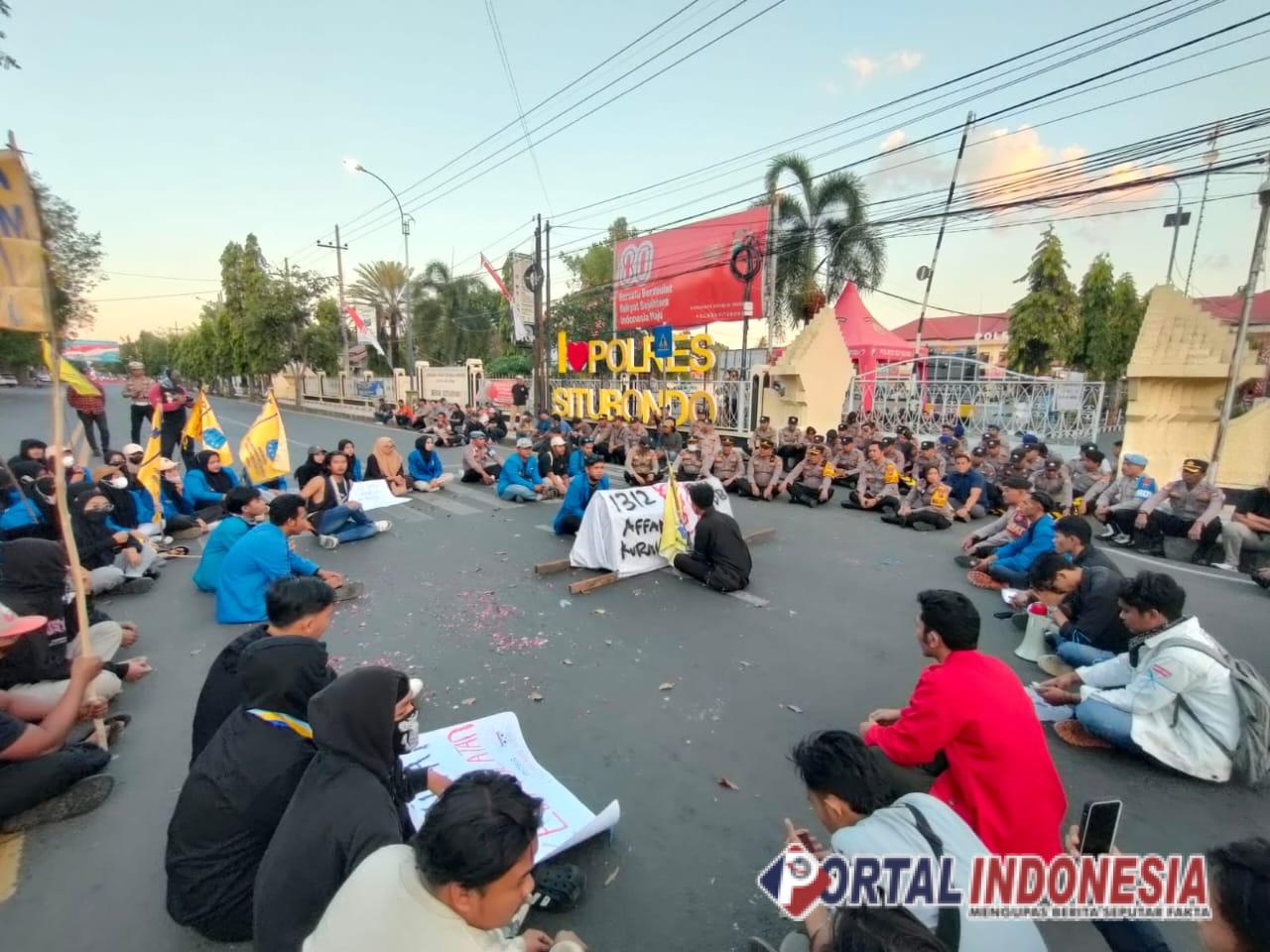 Kapolres Situbondo AKBP Rezi Dharmawan, S.I.K., M.I.K. hadir langsung menemui massa aksi, mendengarkan aspirasi, sekaligus menyampaikan apresiasi atas jalannya unjuk rasa yang berlangsung tertib dan kondusif.