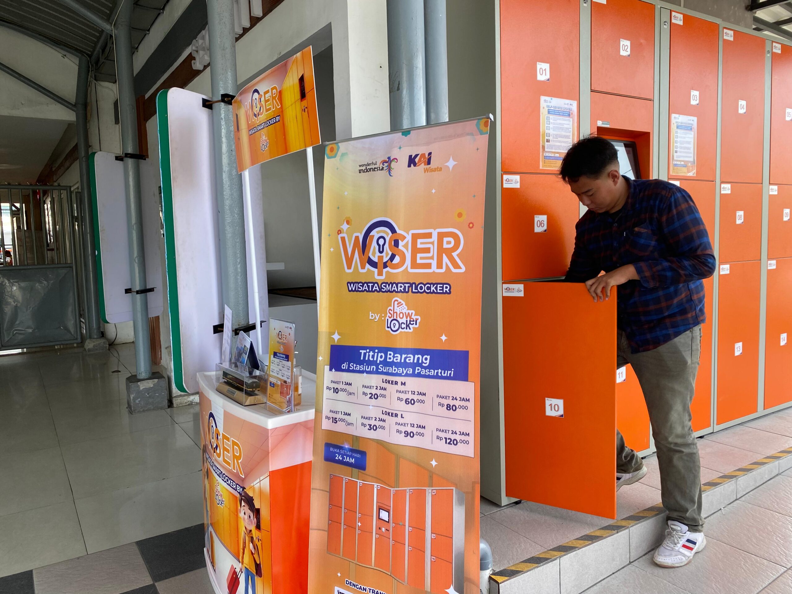 SURABAYA- Layanan penitipan barang berbasis digital Wisata Smart Locker (Wiser) diperluas ke Stasiun Surabaya Pasar Turi. Layanan ini resmi beroperasi mulai Kamis, 15 Mei 2025 dan berlokasi strategis di area sebelah utara pintu kedatangan stasiun.