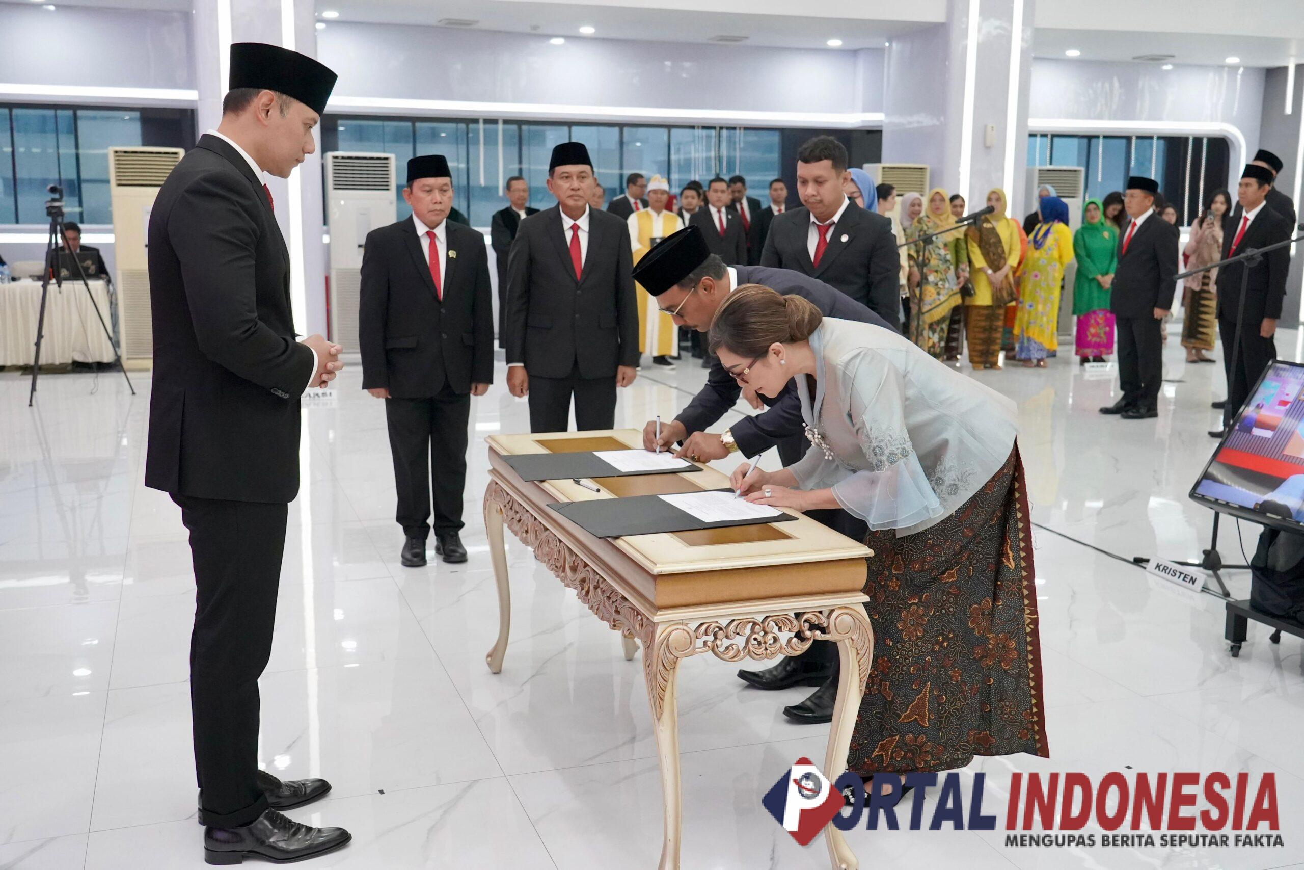 JAKARTA – Menteri Agraria dan Tata Ruang/Kepala Badan Pertanahan Nasional (ATR/BPN), Agus Harimurti Yudhoyono (AHY) melantik 67 pejabat di lingkungan Kementerian ATR/BPN yang terdiri dari Pejabat Pimpinan Tinggi Madya dan Pratama serta Pejabat Administrator dan Fungsional.