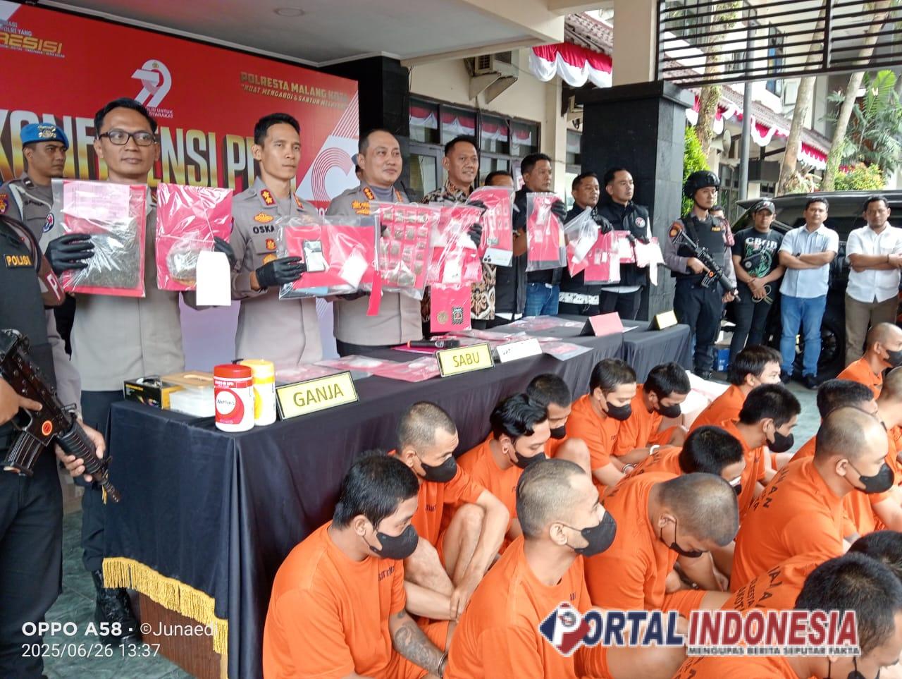 Fakta ini diungkap dalam konferensi pers yang digelar Kamis (26/06/2025), dipimpin langsung Kapolresta Malang Kota, Kombes Nanang Haryono. Puluhan tersangka berdiri di balik meja barang bukti, menunjukkan skala besar operasi yang dijalankan aparat.