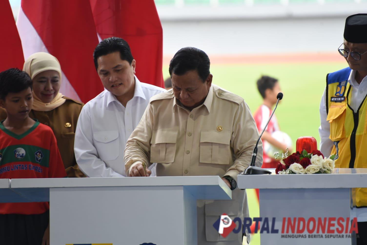 Presiden Republik Indonesia, Prabowo Subianto, hadir di stadion kebanggaan warga Sidoarjo untuk meresmikan renovasi dan pembangunan 17 stadion yang tersebar di seluruh Indonesia, Senin sore (17/03/2025).