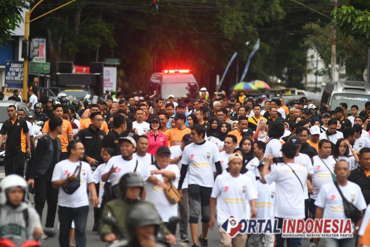 Jalan sehat bertema Uklam Tahes yang berarti “jalan santai” dalam bahasa khas Malangan ini menjadi salah satu rangkaian kegiatan Hari Bhayangkara yang menonjolkan pendekatan humanis dan inklusif dari Polresta Malang Kota kepada masyarakat. (Junaedi)