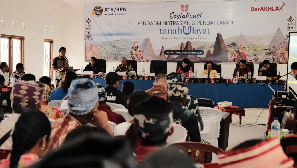 SUMBA TIMUR – Kementerian Agraria dan Tata Ruang/Badan Pertanahan Nasional (ATR/BPN) menegaskan bahwa sertipikasi tanah ulayat tidak hanya penting bagi masyarakat hukum adat, tetapi juga memberi manfaat bagi seluruh pihak. Hal itu disampaikan dalam kegiatan sosialisasi pengadministrasian dan pendaftaran tanah ulayat yang digelar di Desa Tandula Jangga, Kabupaten Sumba Timur, Kamis (18/9).