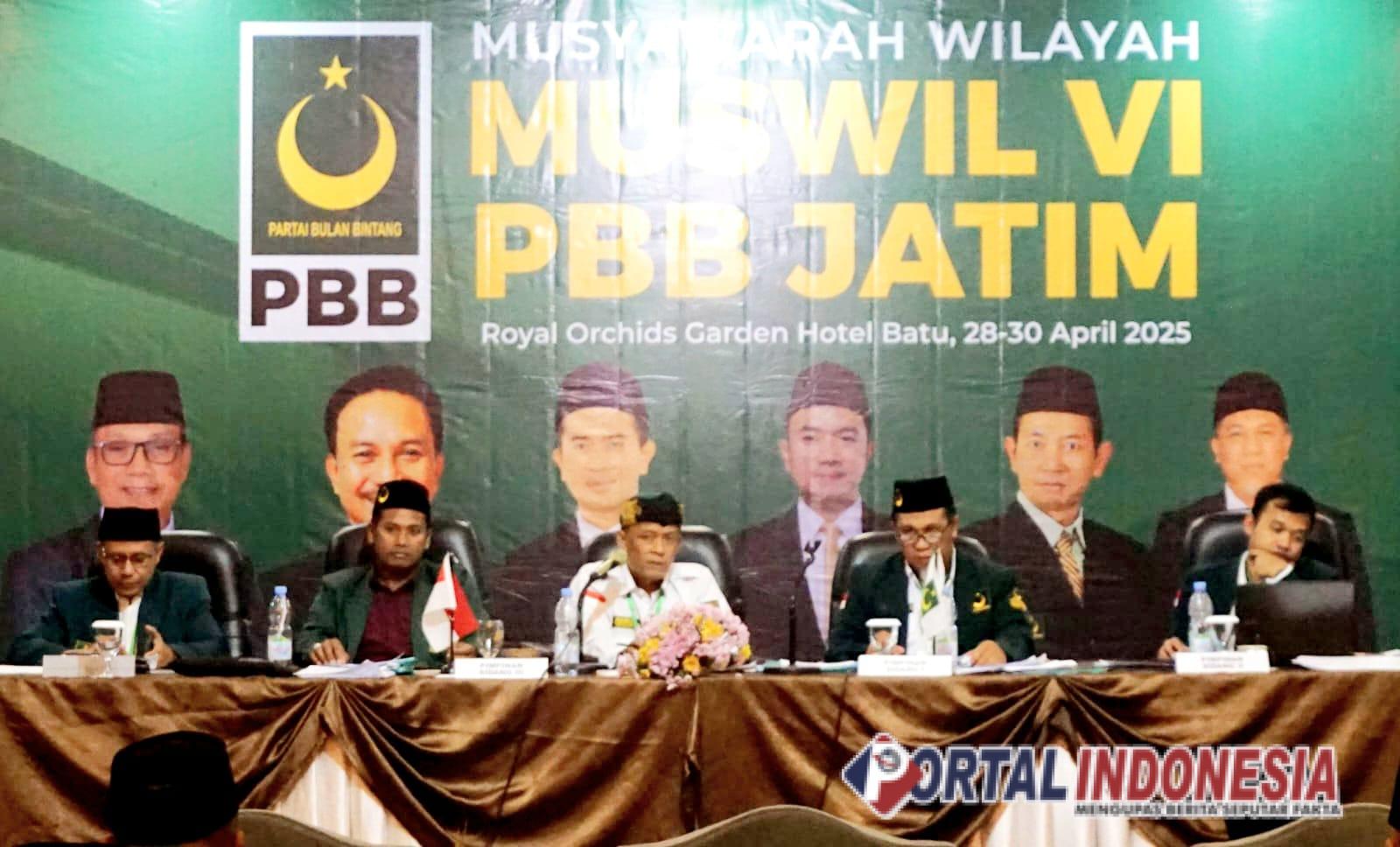 BATU – Keputusan itu disampaikan langsung melalui sidang atau Musyawarah Wilayah (Muswil) VI yang digelar oleh Dewan Pimpinan Wilayah (DPW) Partai Bulan Bintang (PBB) Jawa Timur dan dihadiri DPC PBB se-Jatim tepatnya di Hotel Royal Orchids Garden, Kota Batu, Jawa Timur pada Selasa 29 April 2025 lalu.